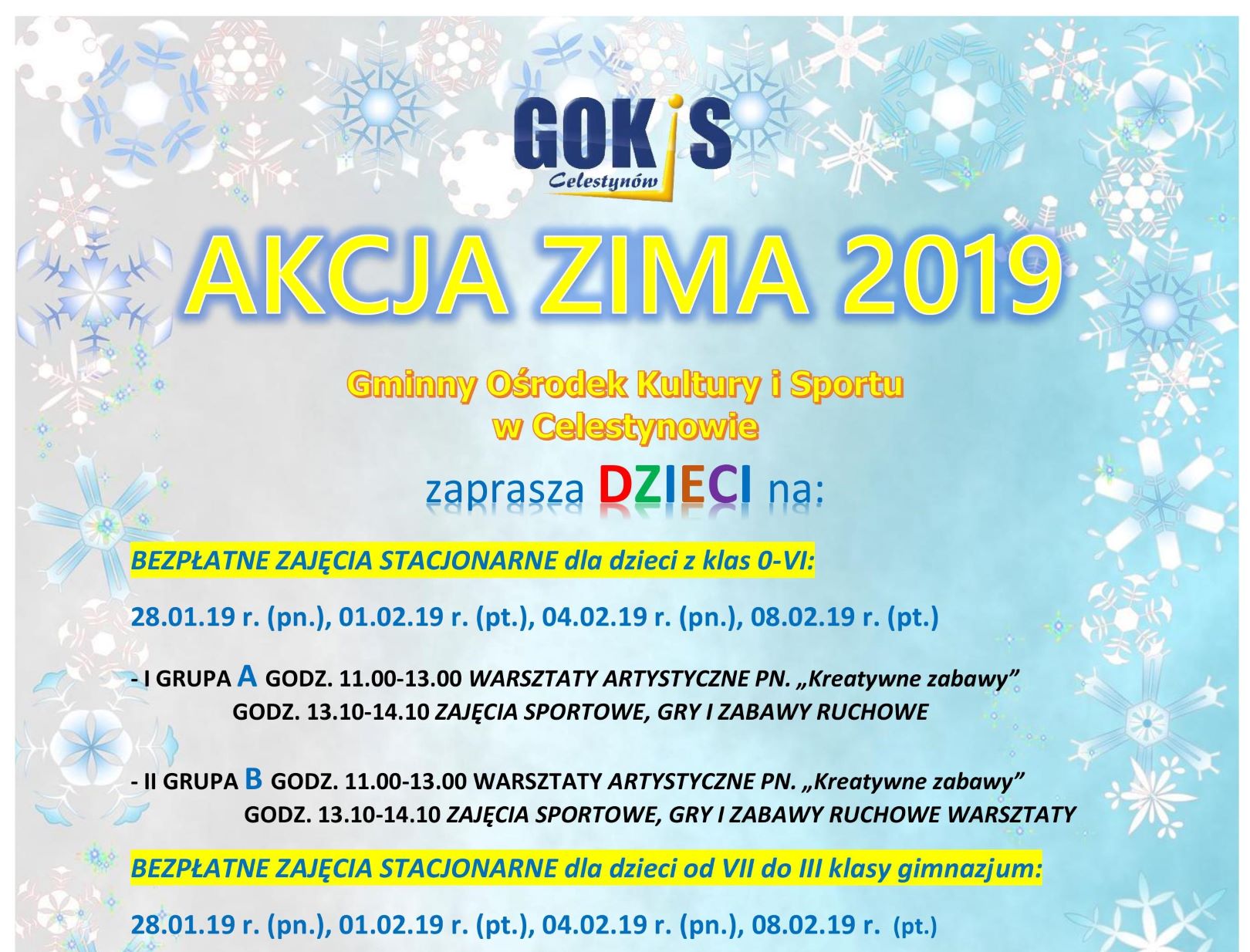 Zapisy od 7 stycznia 2019 r. od godziny 10.00 Zajęcia stacjonarne oraz wyjazdy autokarowe plakat…