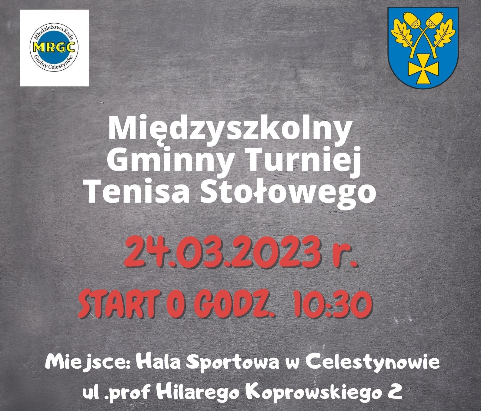21/03/2023 Aktualności Imprezy MIĘDZYSZKOLNY GMINNY TURNIEJ TENISA STOŁOWEGO data: 24.03.2023 r. godzina 10:30, hala sportowa w Celestynowie