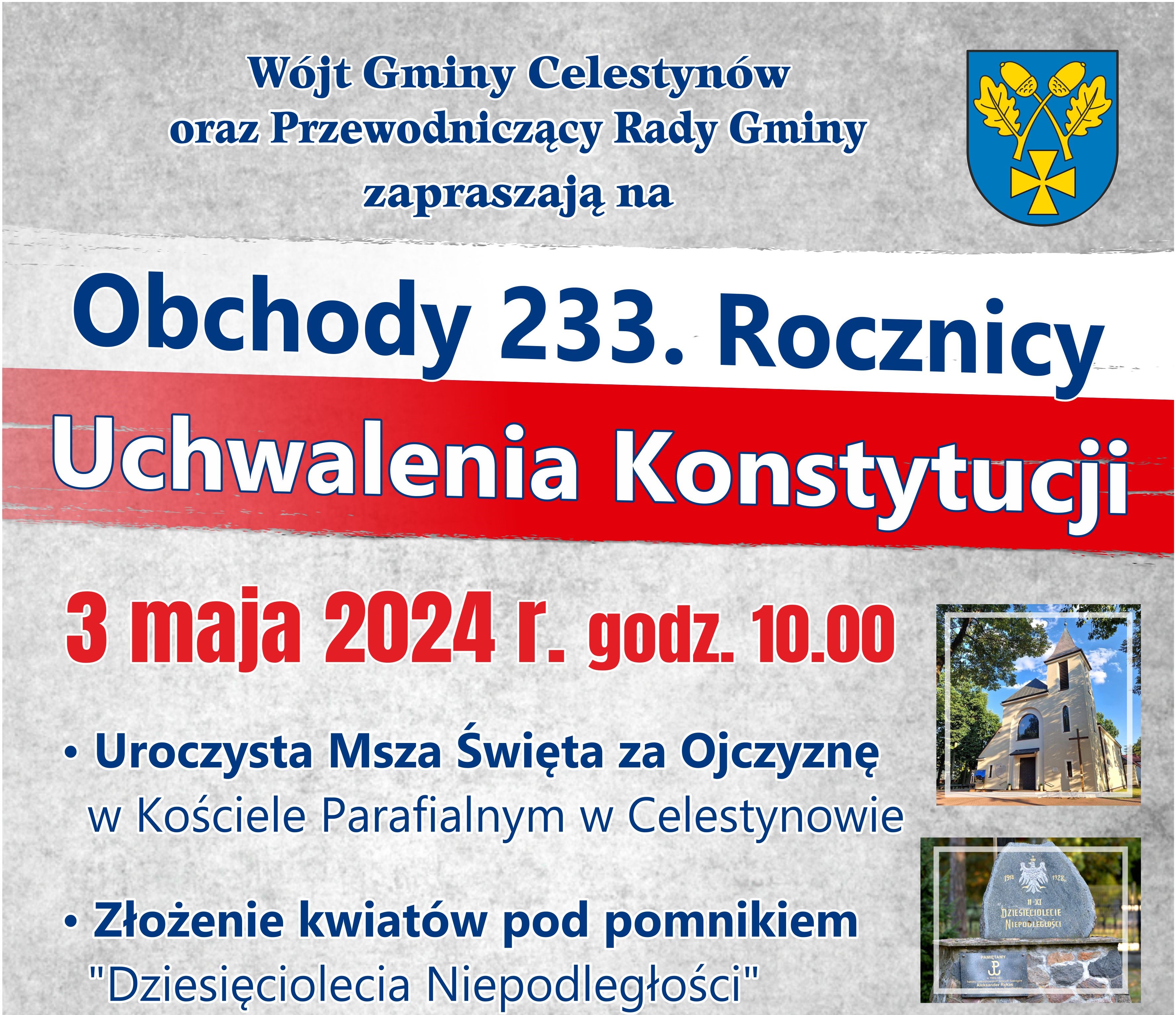 Termin: 3 maja 2024 r. godz. 10:00, miejsce: Kościół Parafialny w Celestynowie