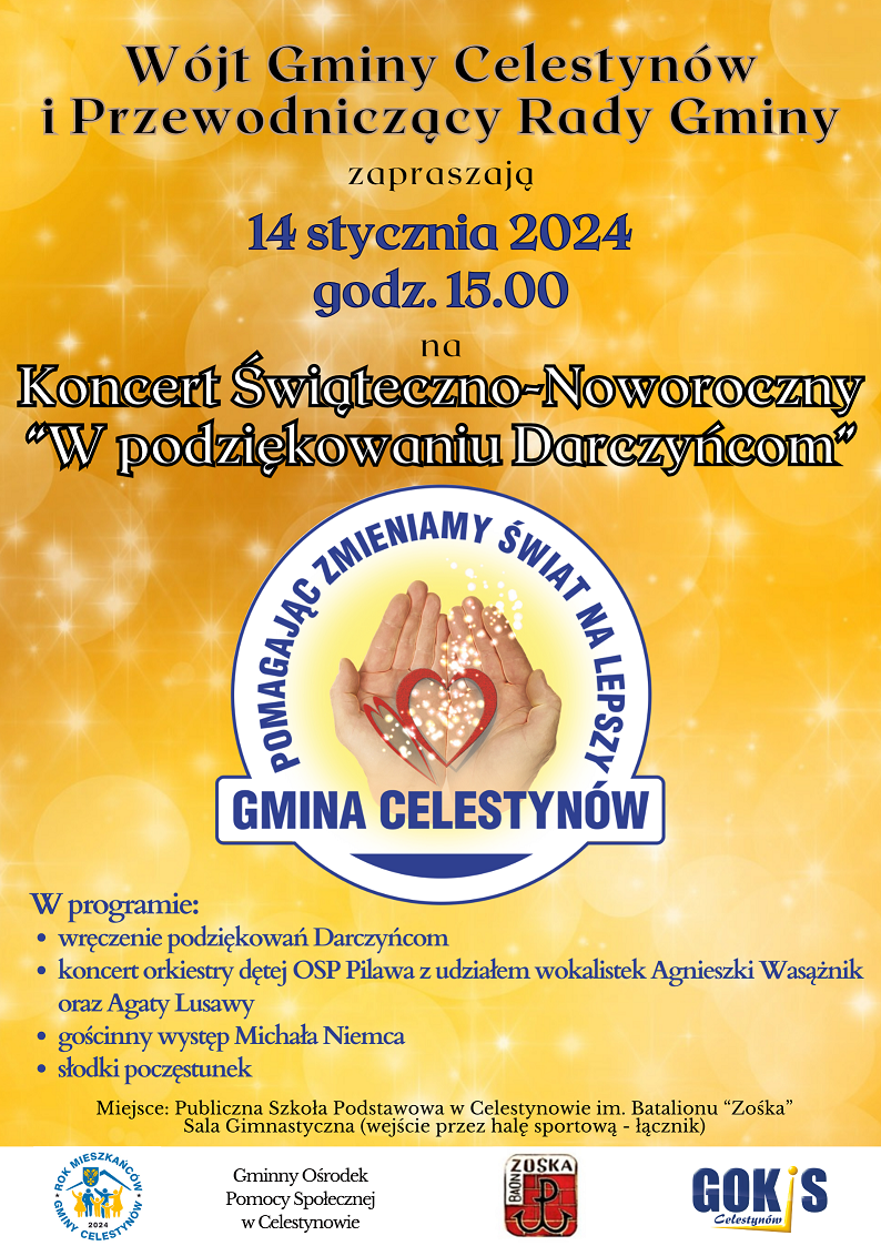 Zapraszamy na koncert Świąteczno-Noworoczny "W podziękowaniu Darczyńcom" który odbędzie się 14 stycznia godz. 15:00 Miejsce:…