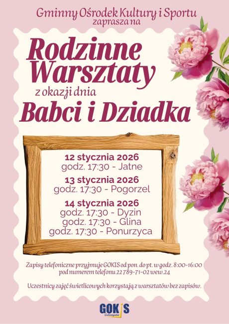 Gminny Ośrodek Kultury i Sportu serdecznie zaprasza dzieci wraz z Babciami i Dziadkami na wyjątkowe, rodzinne warsztaty 💕