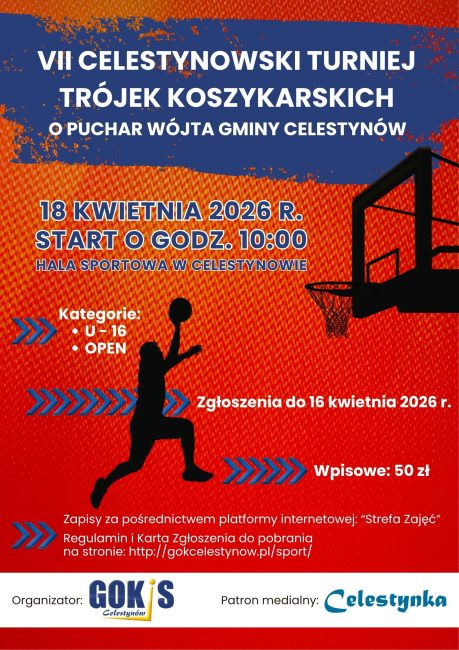 – szczegółowe informacje w regulaminie turnieju dostępnym na strefie zajęć oraz stronie www.gokcelestynow.pl