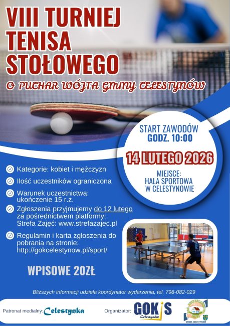 Regulamin VIII Turnieju Tenisa Stołowego o Puchar Wójta Gminy Celestynów + karta zgłoszenia oraz rodo