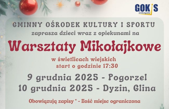 𝒁𝒂𝒑𝒓𝒂𝒔𝒛𝒂𝒎𝒚 𝒏𝒂 𝒎𝒂𝒈𝒊𝒄𝒛𝒏𝒆 𝑴𝒊𝒌𝒐ł𝒂𝒋𝒌𝒐𝒘𝒆 𝒄𝒉𝒘𝒊𝒍𝒆! Przygotowaliśmy dla Was wyjątkowe Mikołajkowe warsztaty, będzie twórczo, świątecznie, idealnie, by poczuć klimat nadchodzących Świąt, spędzić czas razem i stworzyć…